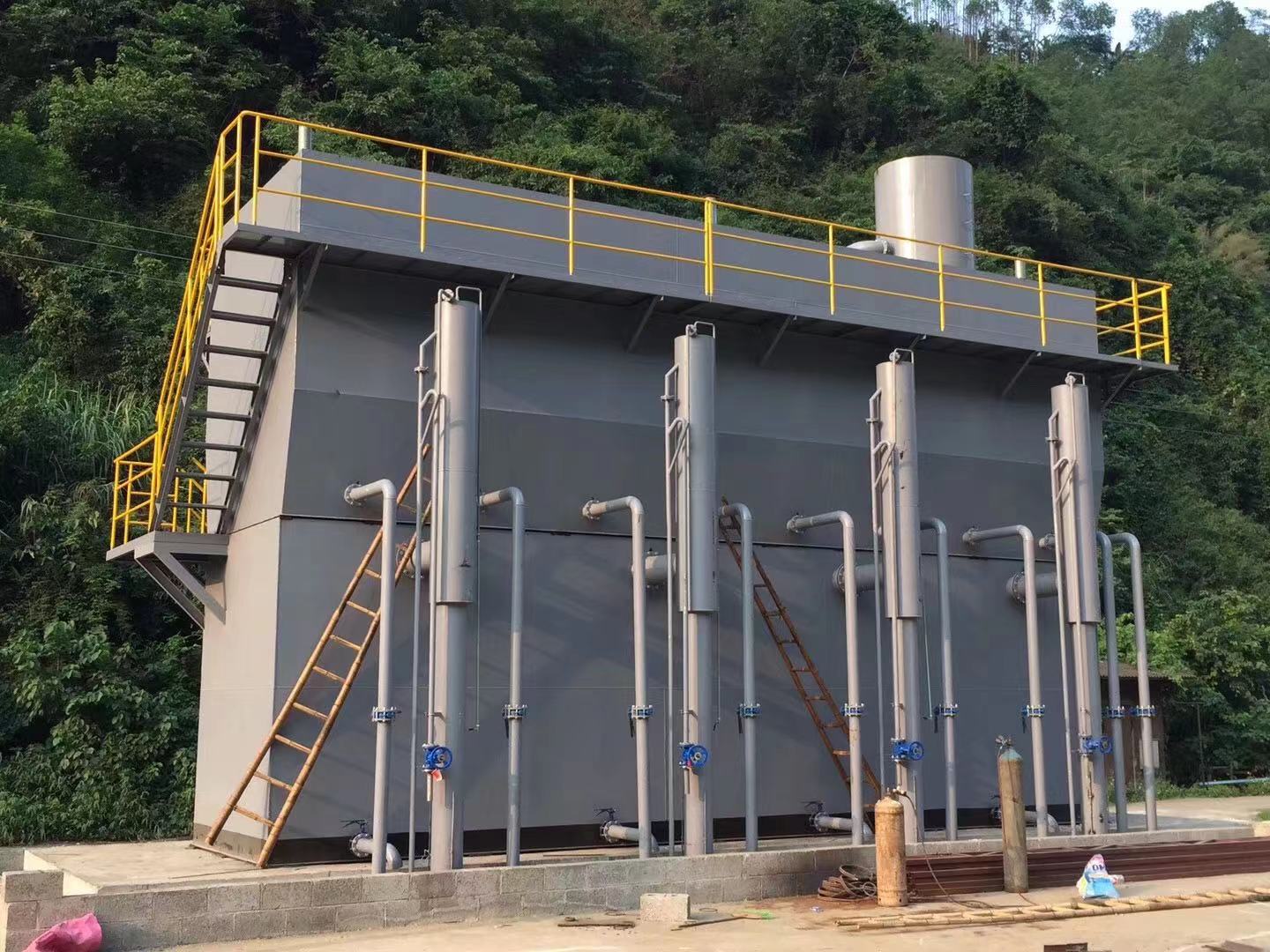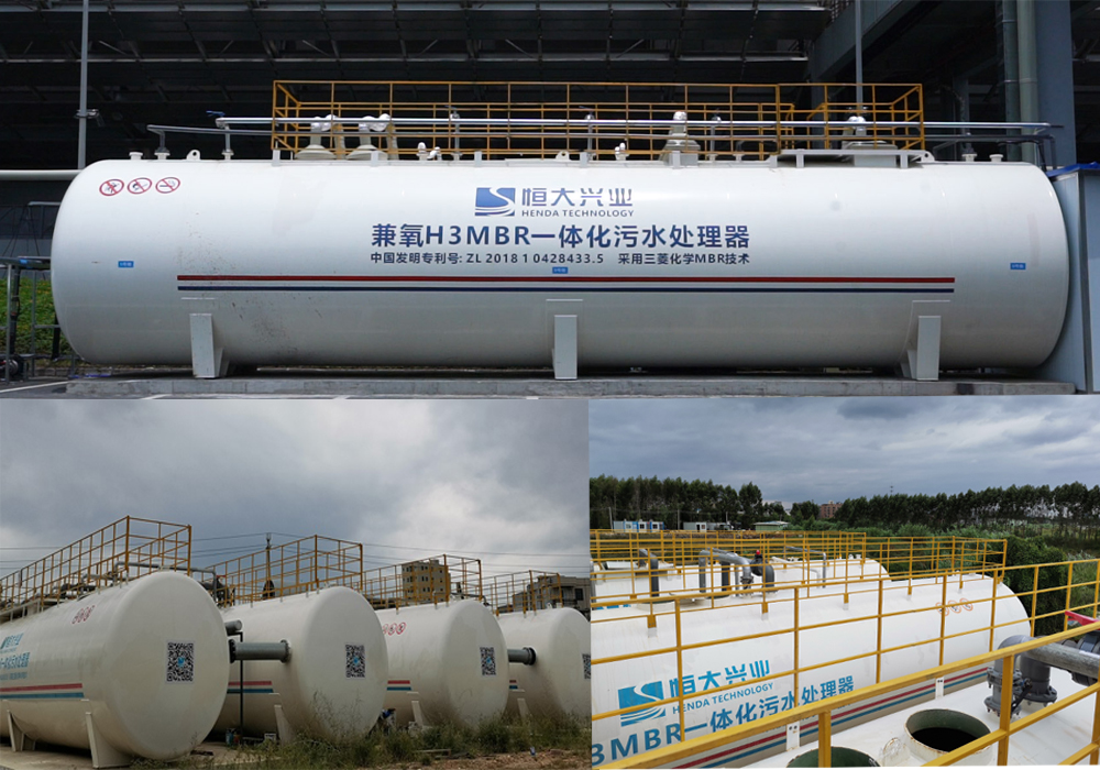 (二)由我司自主研發(fā)的智能兼氧H3MBR一體化污水處理器(中國(guó)發(fā)明專利號(hào):ZL2018 1 0428433.5),采用三菱化學(xué)MBR膜技術(shù),結(jié)合間歇曝氣和間歇進(jìn)水完成脫氮除磷,去除有機(jī)物,并通過(guò)三菱化學(xué)MBR膜組件進(jìn)行泥水分離,產(chǎn)水穩(wěn)定達(dá)到一級(jí)A排放標(biāo)準(zhǔn)。主要應(yīng)用于市政污水、產(chǎn)業(yè)園區(qū)污水、方艙醫(yī)院、城鎮(zhèn)新農(nóng)村生活污水等諸多場(chǎng)景生活污水的處理與回用。