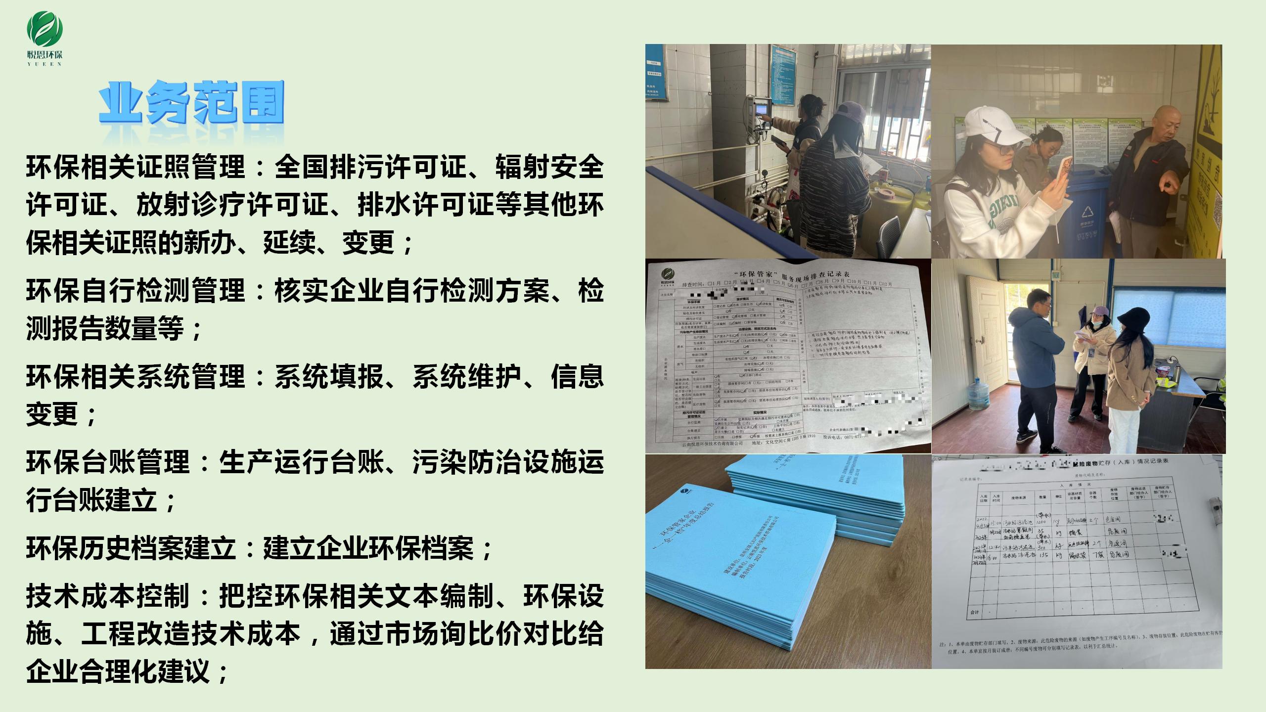 作為一家專業(yè)的環(huán)保管家服務公司,對于企業(yè)環(huán)保服務我們具有詳細的工作服務流程和完整的服務管理體系。人才團隊是推動公司發(fā)展必不可少的核心因素,公司所管理的團隊包含環(huán)保管家專職技術人員,環(huán)保各大領域專家,環(huán)保設施建設維修工程人員,環(huán)境監(jiān)測人員,輻射環(huán)境監(jiān)測人員等。公司人才多年從事相關行業(yè),具有豐富的專業(yè)經(jīng)驗。同時公司也非常注重人才的培養(yǎng),積極為新人創(chuàng)造內部學習、實踐的機會,鼓勵和扶持新員工接受外部專業(yè)培訓及專業(yè)考核,創(chuàng)造適合人才快速成長的環(huán)境,為公司的人才儲備和可靠的環(huán)保管家服務打下了良好基礎。2021年11月5日通過中國國家質量認證中心(CQC)頒發(fā)的《環(huán)境綜合咨詢(環(huán)保管家)服務認證證書》,證書編號:CQC21HB1006R0/46500,認證范圍包含:環(huán)境影響評價及竣工環(huán)境保護驗收服務、排污許可申領服務、環(huán)境應急預案;排污許可證后監(jiān)管、環(huán)境隱患排查爭端與解決方案服務;環(huán)保相關合規(guī)咨詢服務。